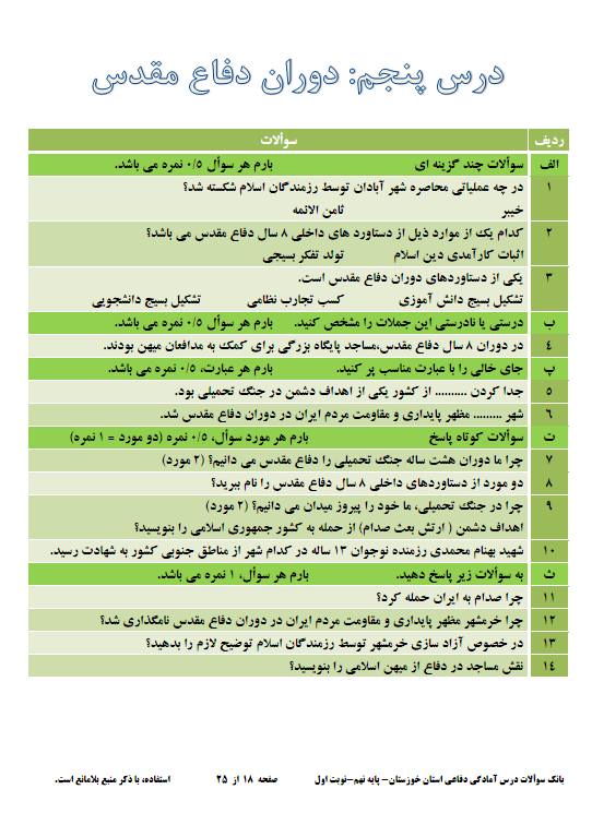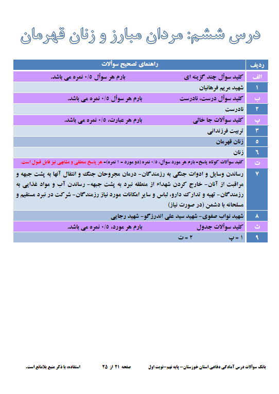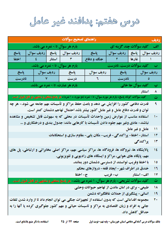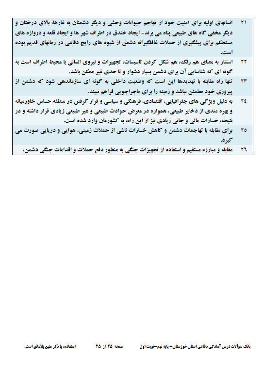 نمونه سوالات امتحاني آمادگي دفاعي پايه نهم 2